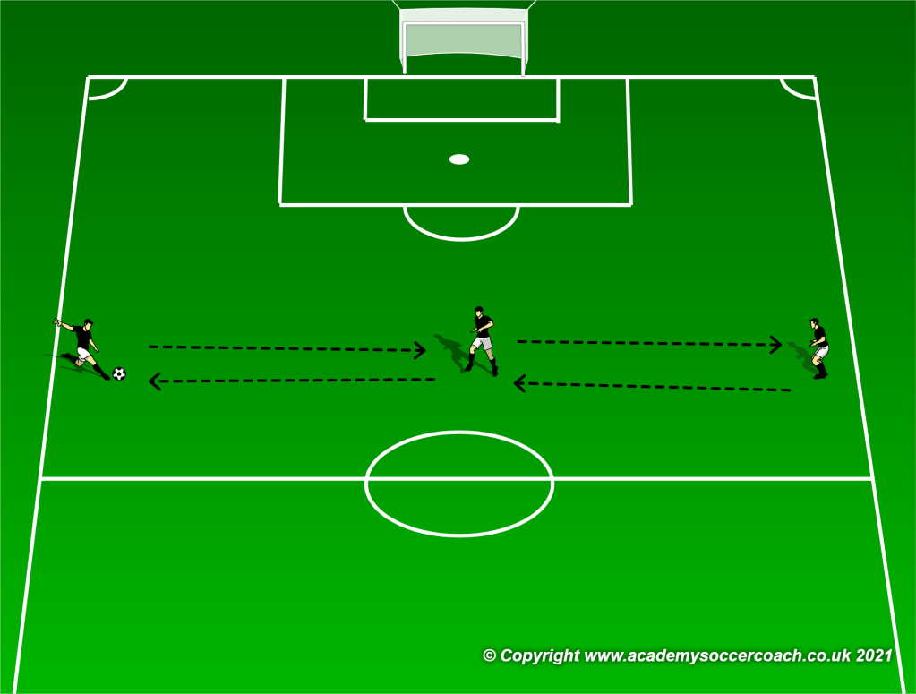Este é exercício faz os jogadores trabalharem bastante a comunicação, percepção e terceiro homem.