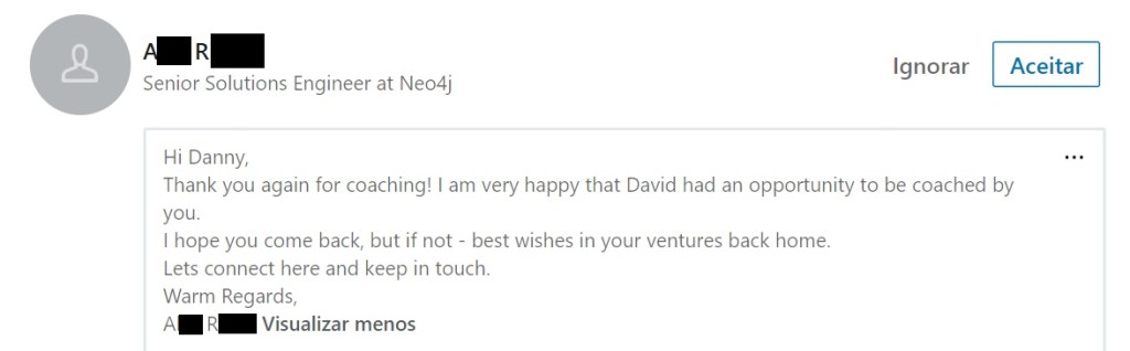 “Olá Danny – Espero que você tenha tido uma boa viagem de volta pro Brasil! Eu perguntei ao Max como foi ser treinado por você e ele respondeu ‘Ótimo, porque ele me fez um jogador melhor’. Ele tambem disse que antes de você, ele não era bom, mas pensa que mais importante que isso foi que você o deu confiança para acreditar em si mesmo. Te desejo o melhor no que vier pra você e the agradeço de novo por tudo que você fez pelo Windham soccer, especialmente pelo Max.”